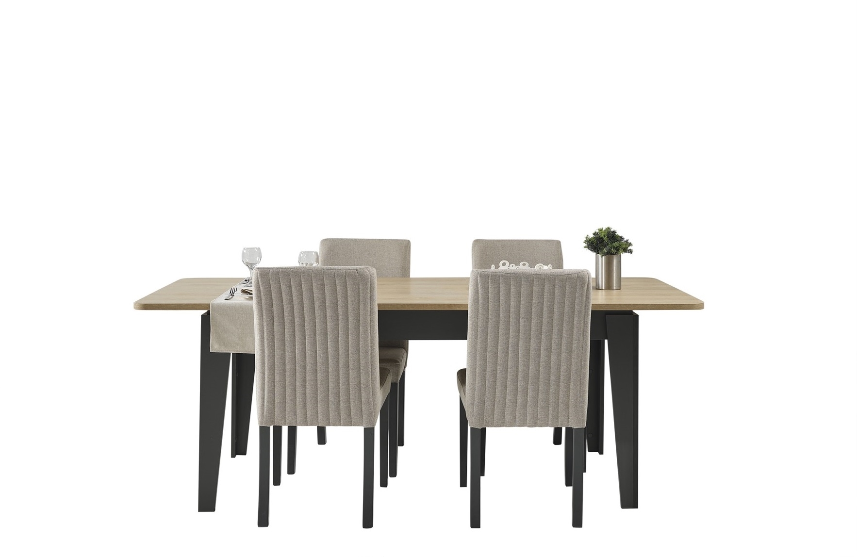 Takım İçeriği 1 adet açılır yemek masası, 4 adet sandalye, 1 adet konsoldan oluşmaktadır.